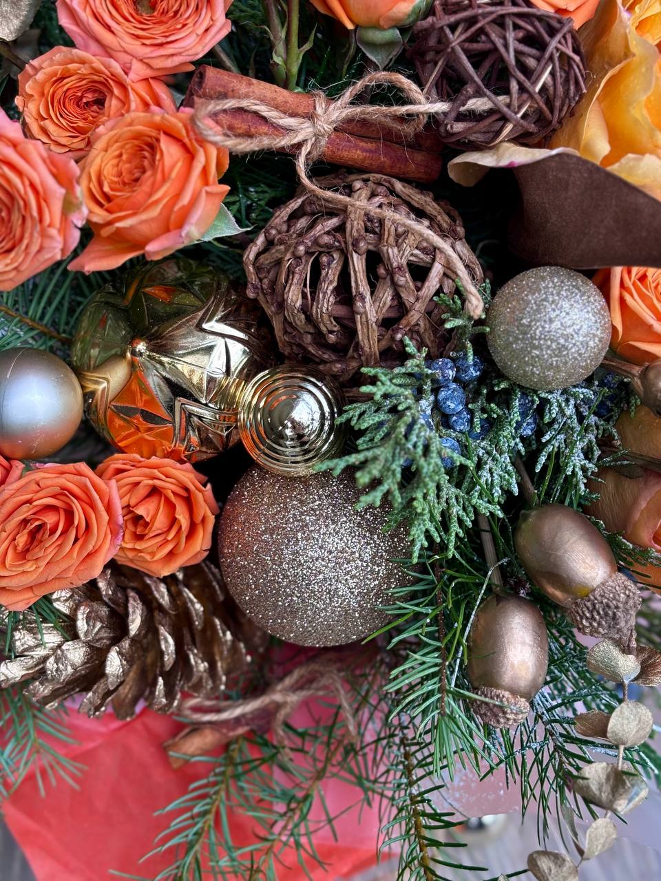 Perfect as a cheerful gift or a centerpiece to illuminate your celebrations, Tangerine Holiday Bliss brings a fresh twist to traditional Christmas décor. Handcrafted with love and care, it’s a one-of-a-kind floral experience that embodies the joy and warmth of the season.